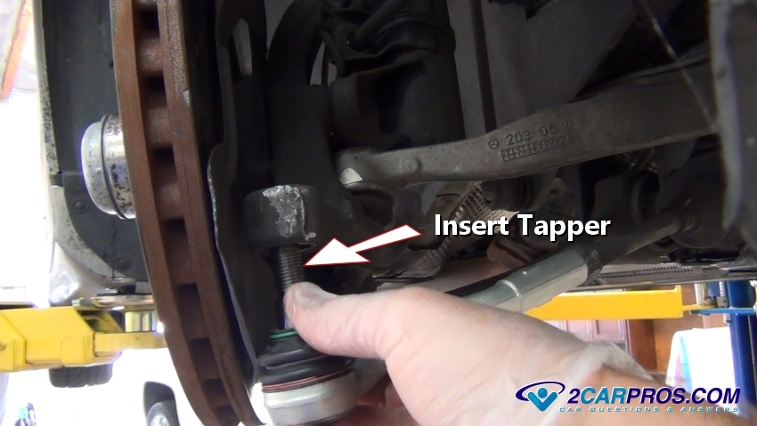 Step 8 - While holding downward pressure on the tie rod end, use a hammer and strike the spindle bulk head to "shock" the taper fit loose.