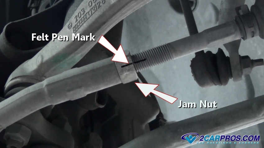 Step 5 - A jam nut is used to hold the tie rod in place and connected to the output rods of the rack and pinion or inner tie rods, use a felt pen to mark the position of the jam nut.