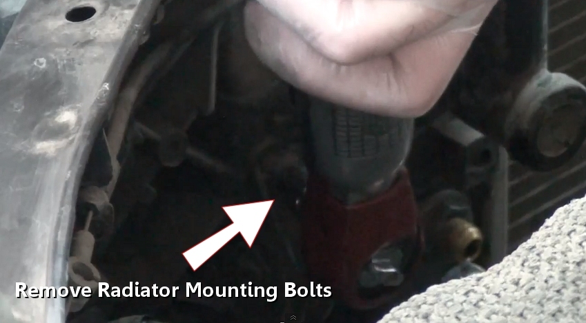 Step 16 - Once the transmission lines have been removed, locate the radiator mounting bolts and remove.